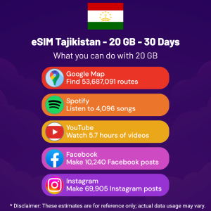 Hello, Globetrotter! 🚀 Gearing up for a journey to the world’s hidden gem, Tajikistan? Let our 20 GB – 30 Days eSIM be your reliable digital ally, ensuring you remain connected at every step!