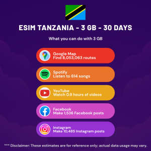 Hello, Globetrotter! 🚀 Gearing up for a journey to the world’s hidden gem, Tanzania? Let our 3 GB – 30 Days eSIM be your reliable digital ally, ensuring you remain connected at every step!