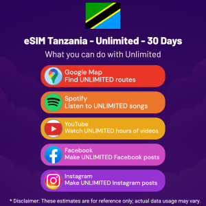 Hello, Globetrotter! 🚀 Gearing up for a journey to the world’s hidden gem, Tanzania? Let our Unlimited – 30 Days eSIM be your reliable digital ally, ensuring you remain connected at every step!