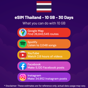 Hello, Globetrotter! 🚀 Gearing up for a journey to the world’s hidden gem, Thailand? Let our 10 GB – 30 Days eSIM be your reliable digital ally, ensuring you remain connected at every step!