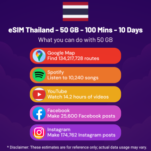 Hello, Globetrotter! 🚀 Gearing up for a journey to the world’s hidden gem, Thailand? Let our 50 GB – 100 Mins – 10 Days eSIM be your reliable digital ally, ensuring you remain connected at every step!