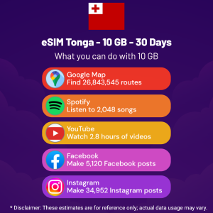 Hello, Globetrotter! 🚀 Gearing up for a journey to the world’s hidden gem, Tonga? Let our 10 GB – 30 Days eSIM be your reliable digital ally, ensuring you remain connected at every step!