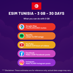 Hello, Globetrotter! 🚀 Gearing up for a journey to the world’s hidden gem, Tunisia? Let our 3 GB – 30 Days eSIM be your reliable digital ally, ensuring you remain connected at every step!