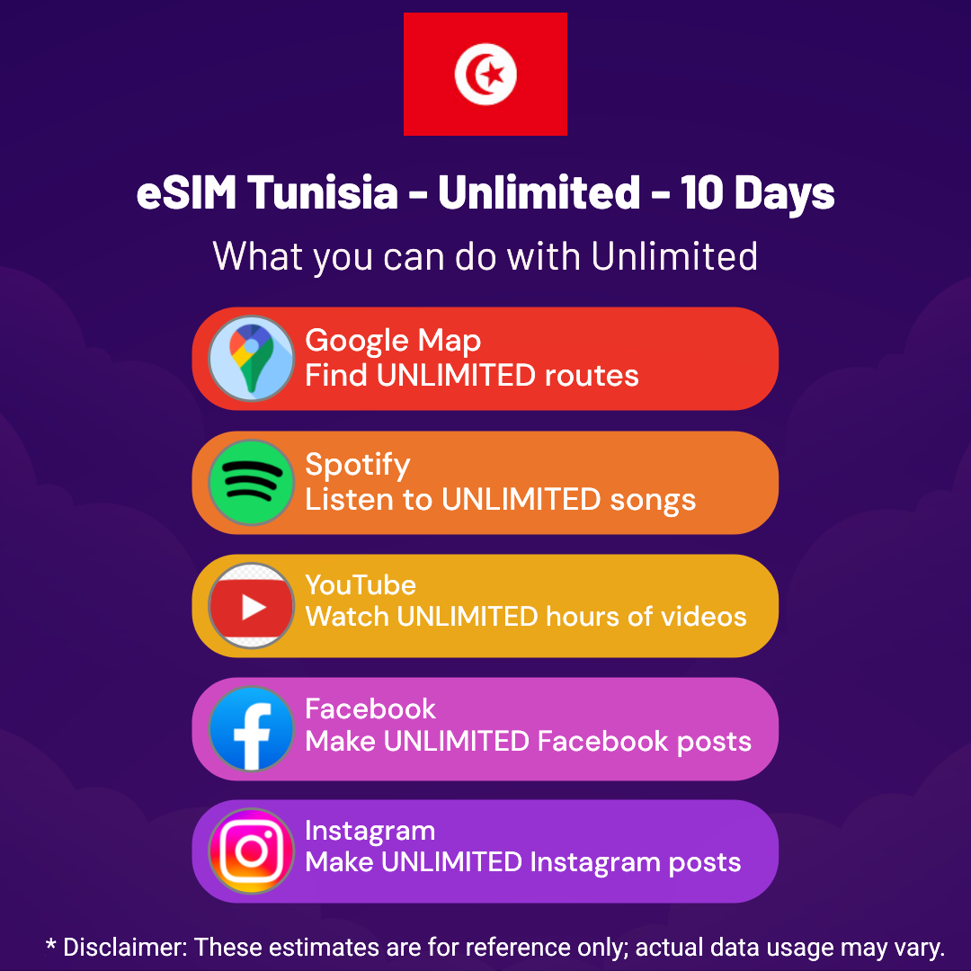 Hello, Globetrotter! 🚀 Gearing up for a journey to the world’s hidden gem, Tunisia? Let our Unlimited – 10 Days eSIM be your reliable digital ally, ensuring you remain connected at every step!