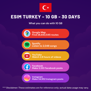 Hello, Globetrotter! 🚀 Gearing up for a journey to the world’s hidden gem, Turkey? Let our 10 GB – 30 Days eSIM be your reliable digital ally, ensuring you remain connected at every step!
