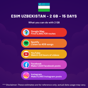 Hello, Globetrotter! 🚀 Gearing up for a journey to the world’s hidden gem, Uzbekistan? Let our 2 GB – 15 Days eSIM be your reliable digital ally, ensuring you remain connected at every step!
