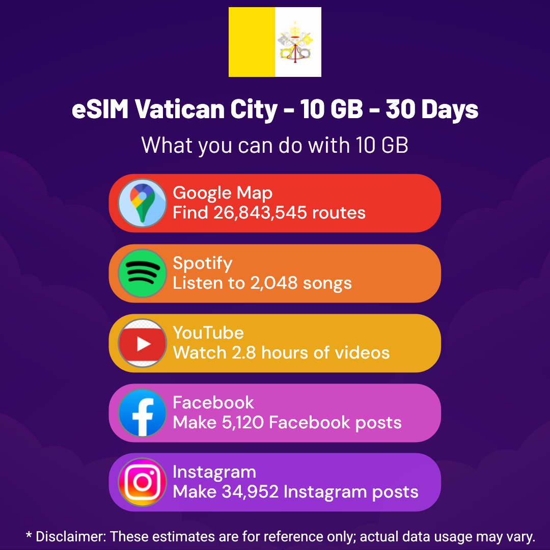 Hello, Globetrotter! 🚀 Gearing up for a journey to the world’s hidden gem, Vatican City? Let our 10 GB – 30 Days eSIM be your reliable digital ally, ensuring you remain connected at every step!